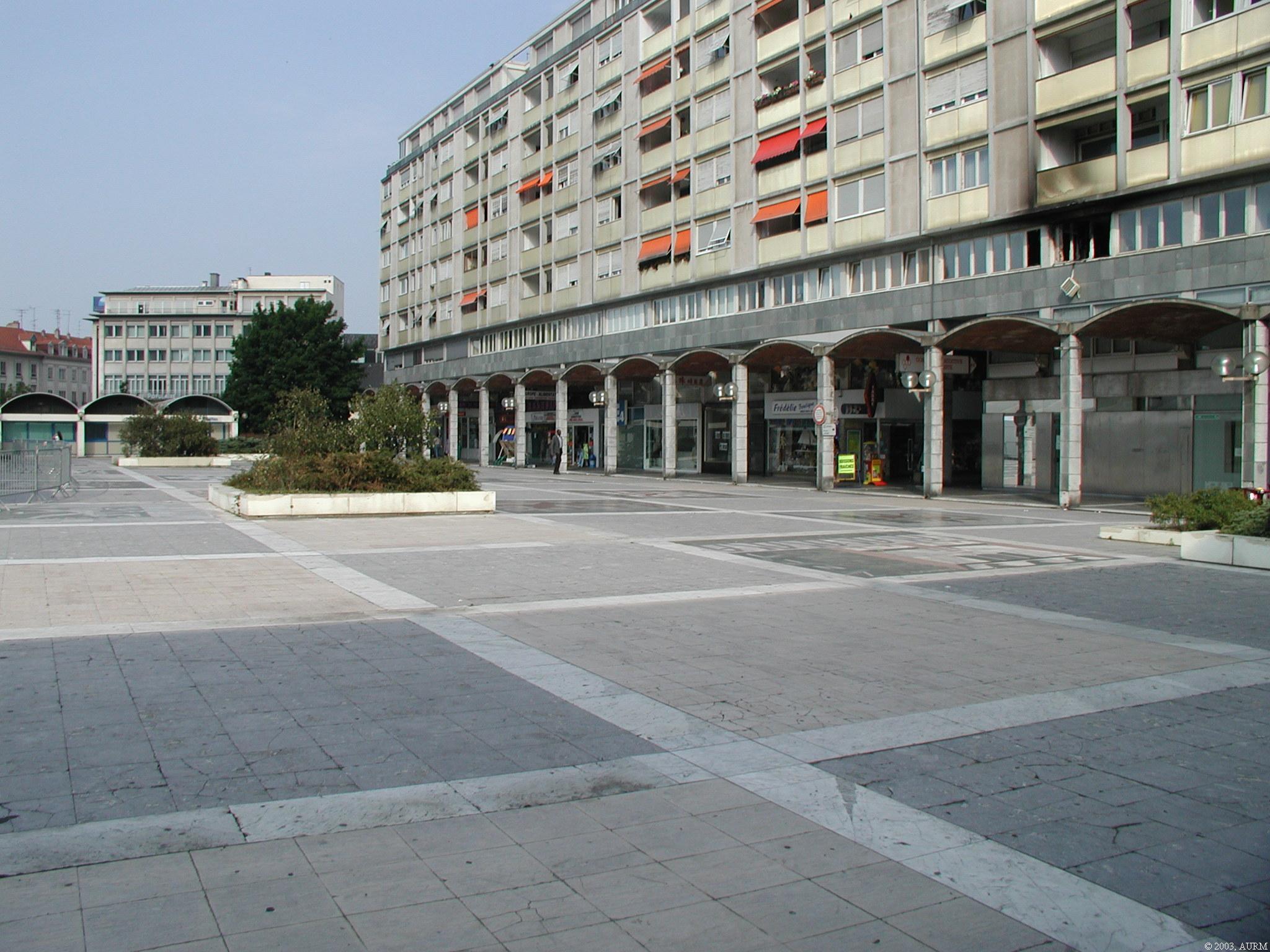 Place publique. Magasins sous arcades.