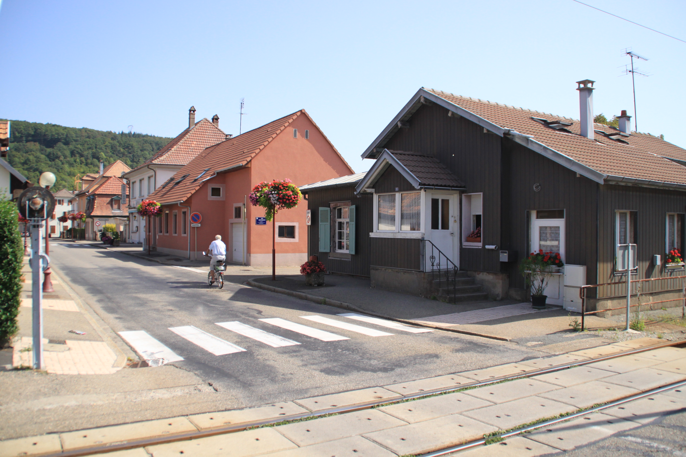 Station TramTrain. Voie ferrée. Route.