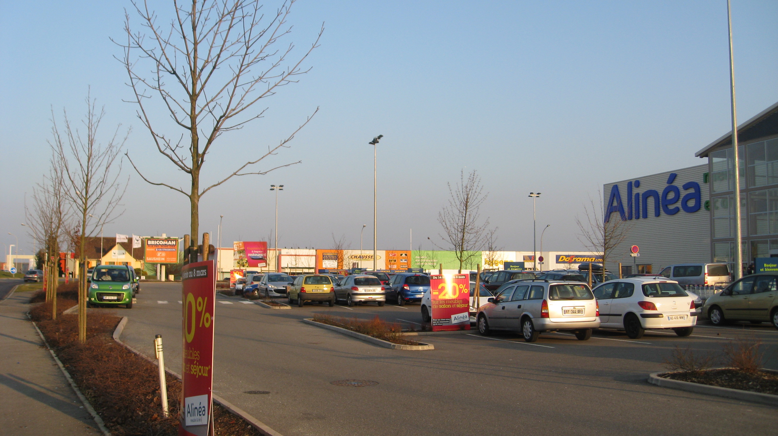 Parking. Voitures. Bâtiment commercial. ZA.