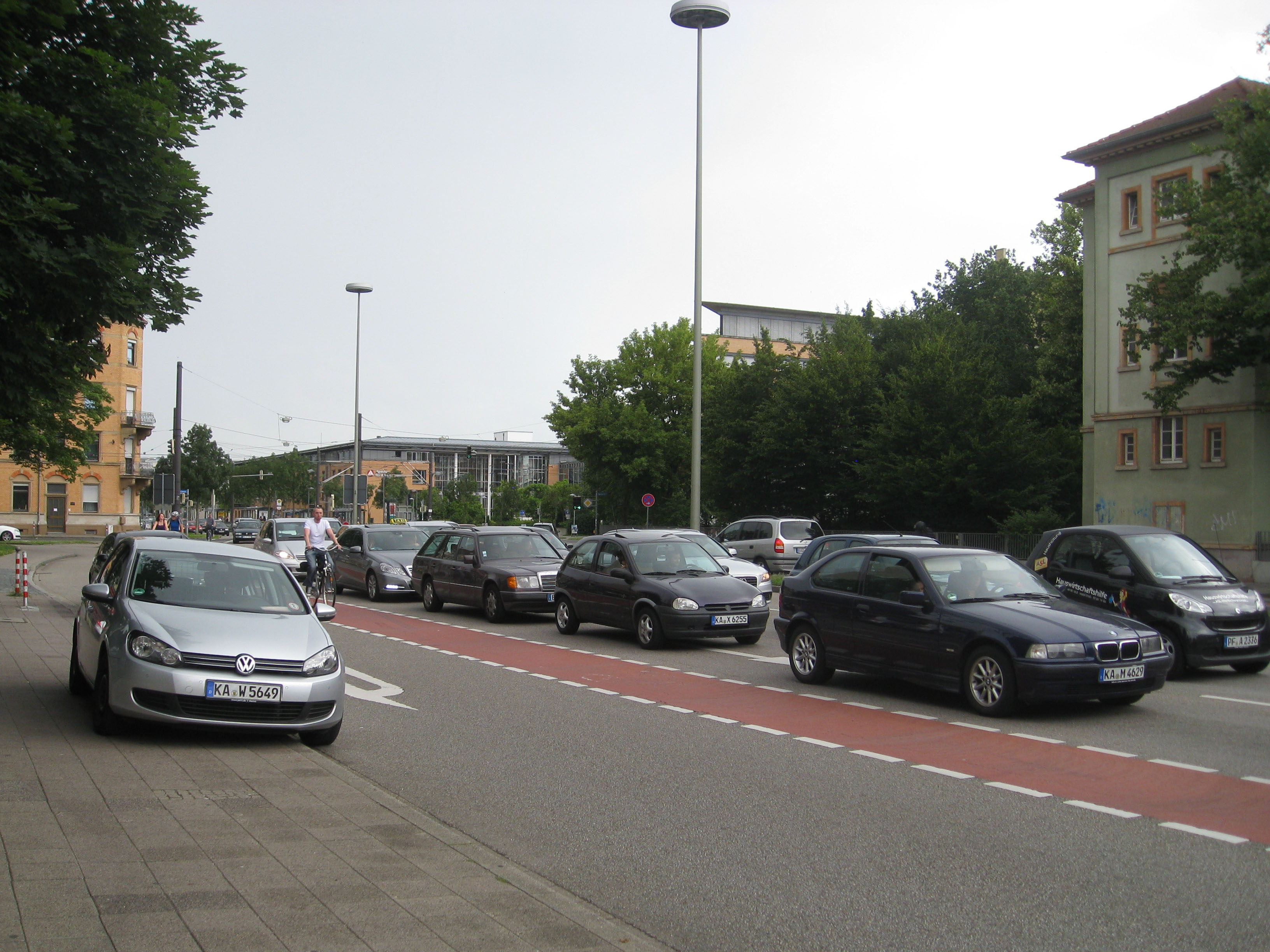 Bande cyclable. Cycliste. Route. Voiture.