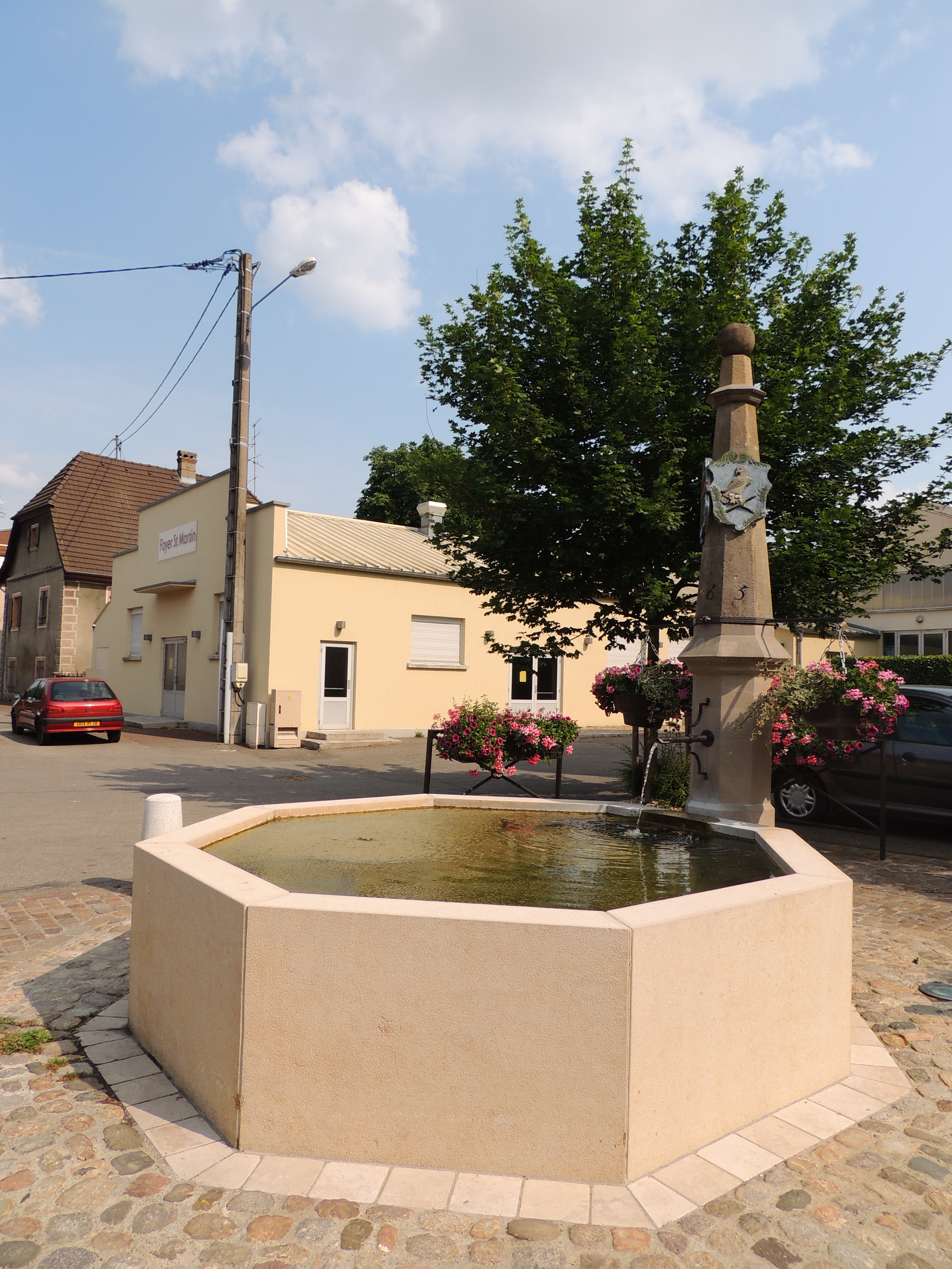 Fontaine. Habitation. Voiture.