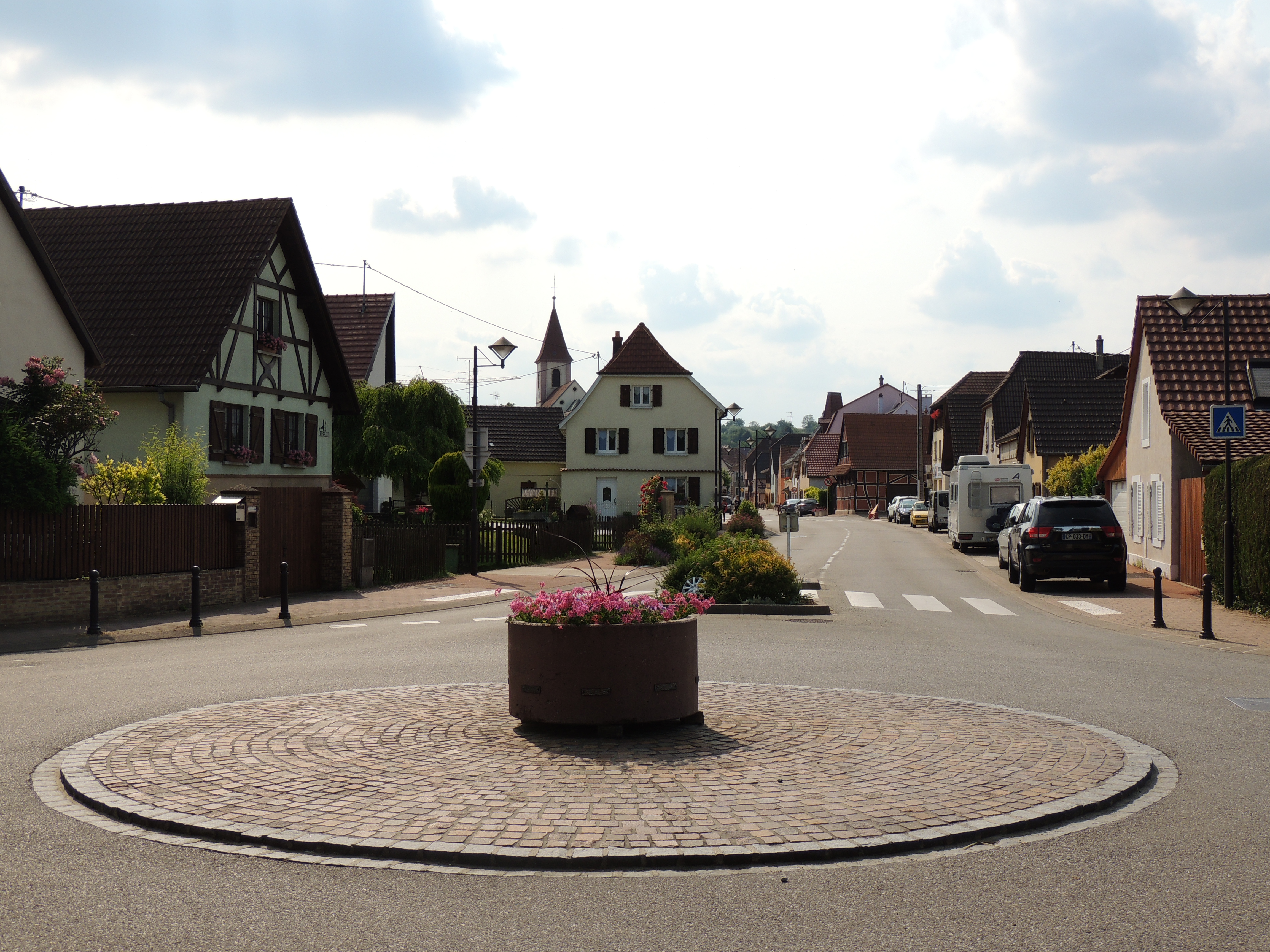 Habitation. Voiture. Route. Eglise.