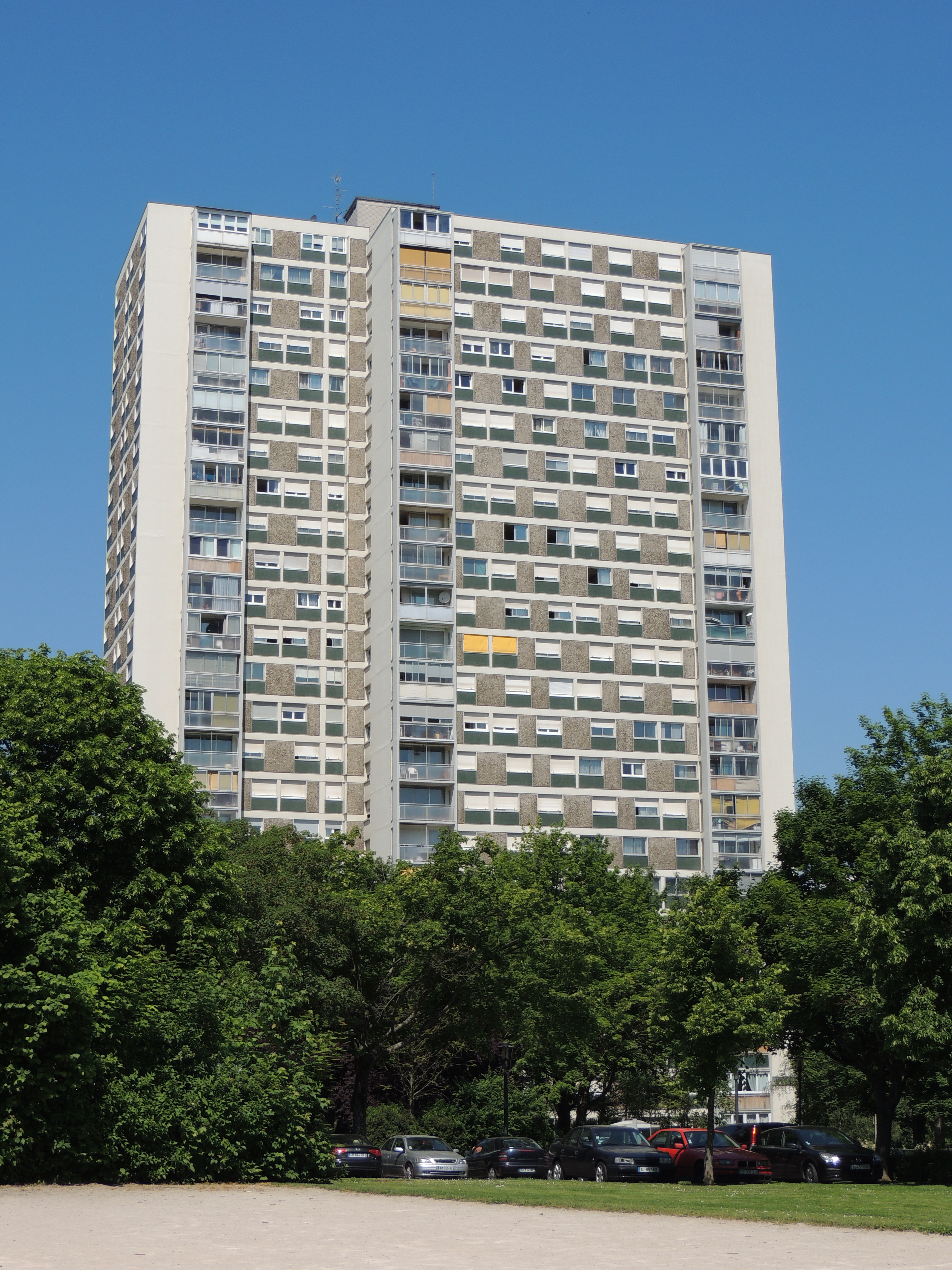 Immeuble. Voiture. Arbre.