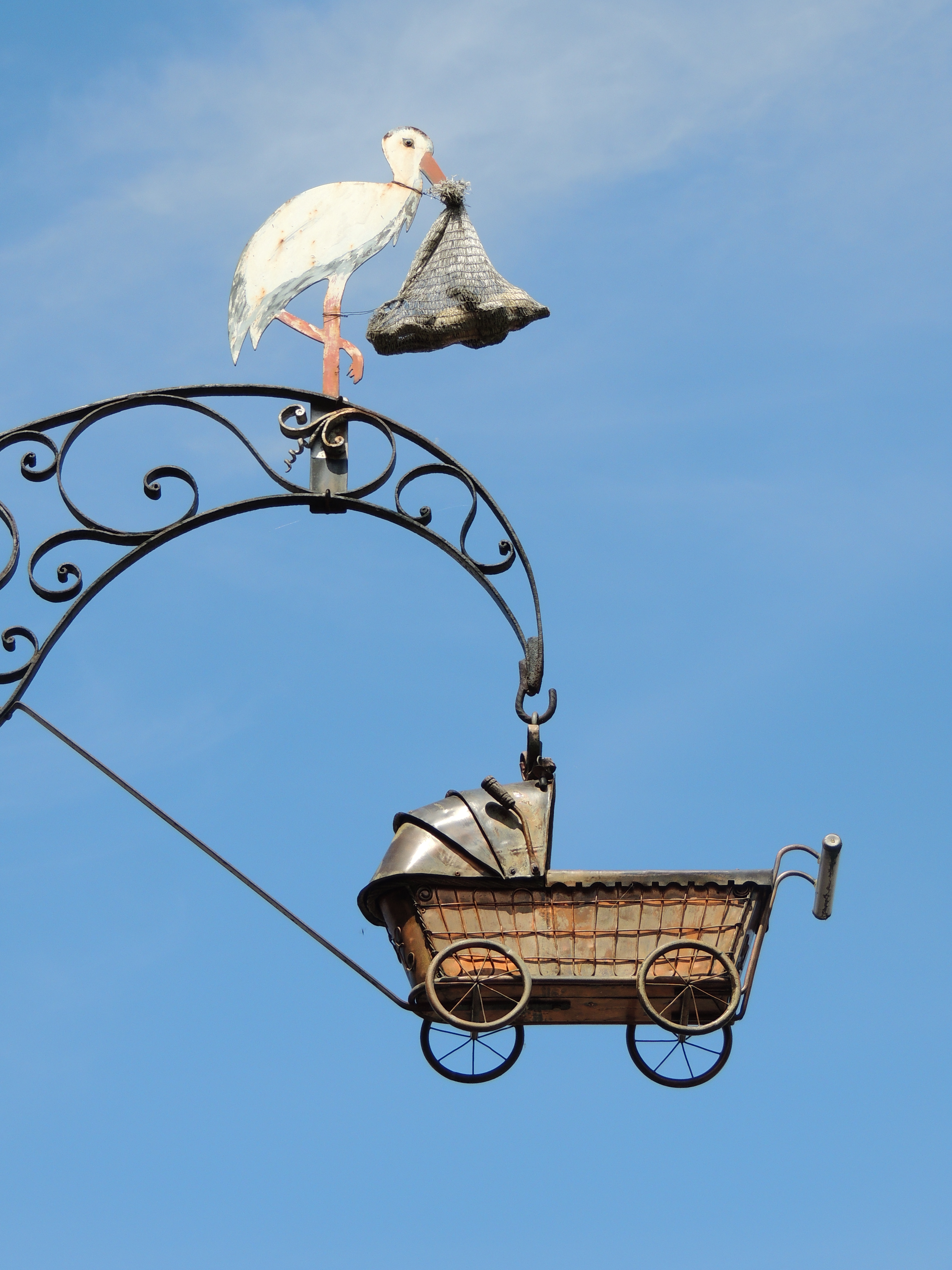 Mairie. Enseigne en fer forgé. Cigogne.