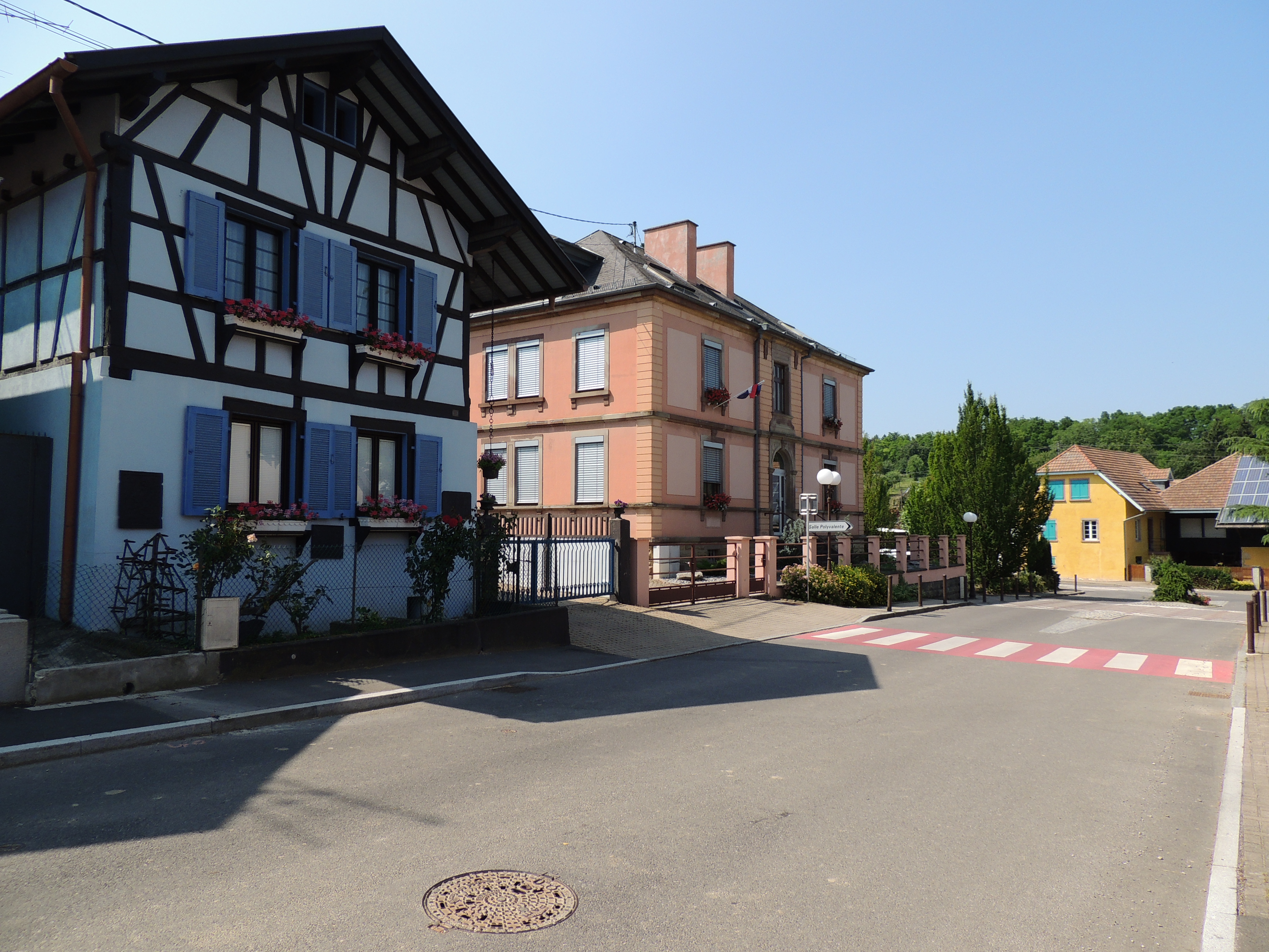 Mairie. Ecole. Maison. Route.