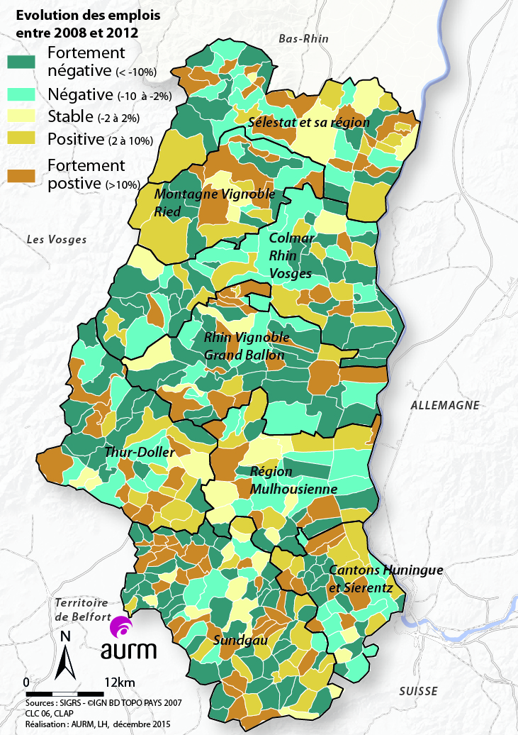 Evolution des emplois entre 2008 et 2012