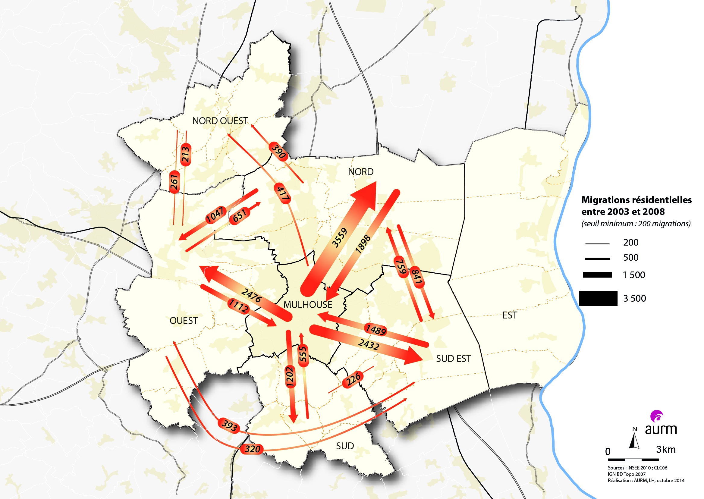 Les migrations résidentielles 2003 - 2008 - Région mulhousienne